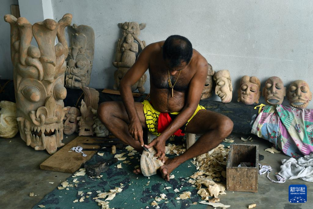 斯里兰卡:制作传统面具-新华网
