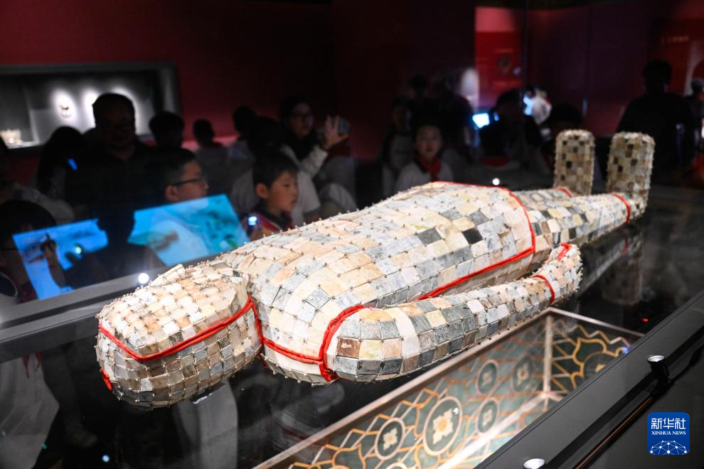7月2日,在大云山汉王陵博物馆,游客参观《玉得永生——盱眙汉代葬玉文化特展》中展出的金缕玉衣(复刻)。