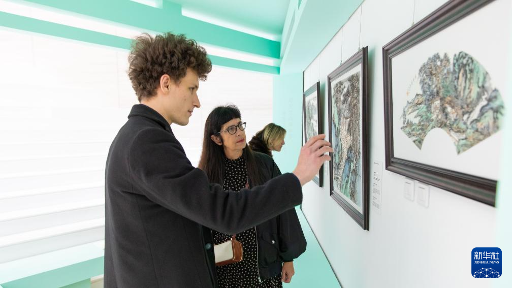 10月17日,人们在塞尔维亚贝尔格莱德的中国文化中心参观“山海志合——庆祝中塞人民友谊70年书画展”。