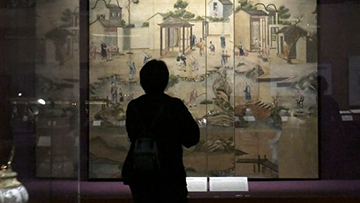 12月16日,在西班牙马德里中国文化中心,参观者在“安善萃锦——中式生活美学展”上参观。