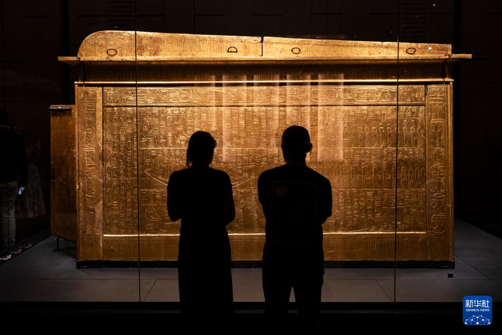 12月20日,游客在埃及吉萨的大埃及博物馆观赏法老图坦卡蒙的神龛。