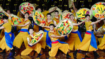 2月28日,社火队员在甘肃省永靖县“迎新年·贺新春”社火展演活动中表演秧歌。