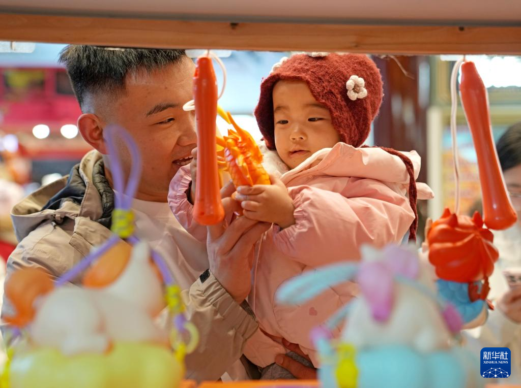 3月2日,游客带着小朋友在豫园商城选购手提花灯。