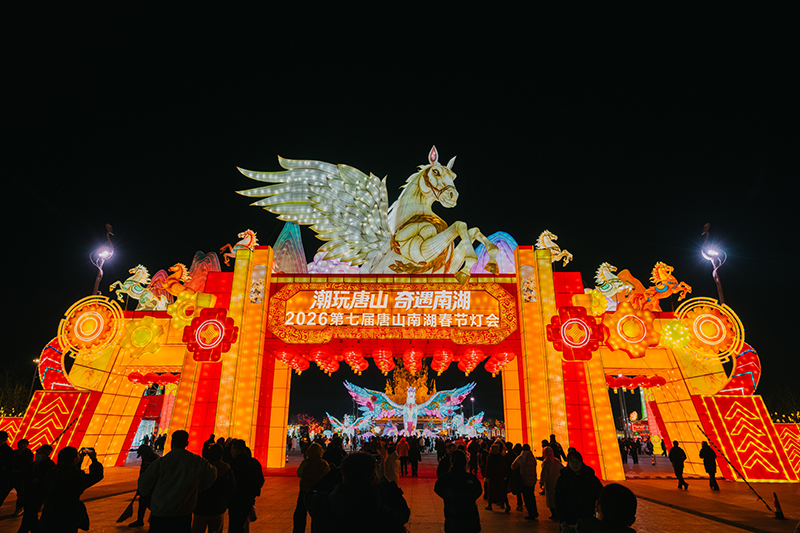 璀璨灯火映南湖,欢歌笑语庆新春。2026唐山南湖春节灯会,以传统为根、以科技为翼、以潮流为韵,不仅让游客在沉浸式体验中感受着新春的喜庆与温暖,更让唐山的城市活力与文化底蕴在光影流转中尽情绽放,为这个新春绘就了一幅传统与现代交融、欢乐与温暖共生的美好画卷。(新华网 李权)