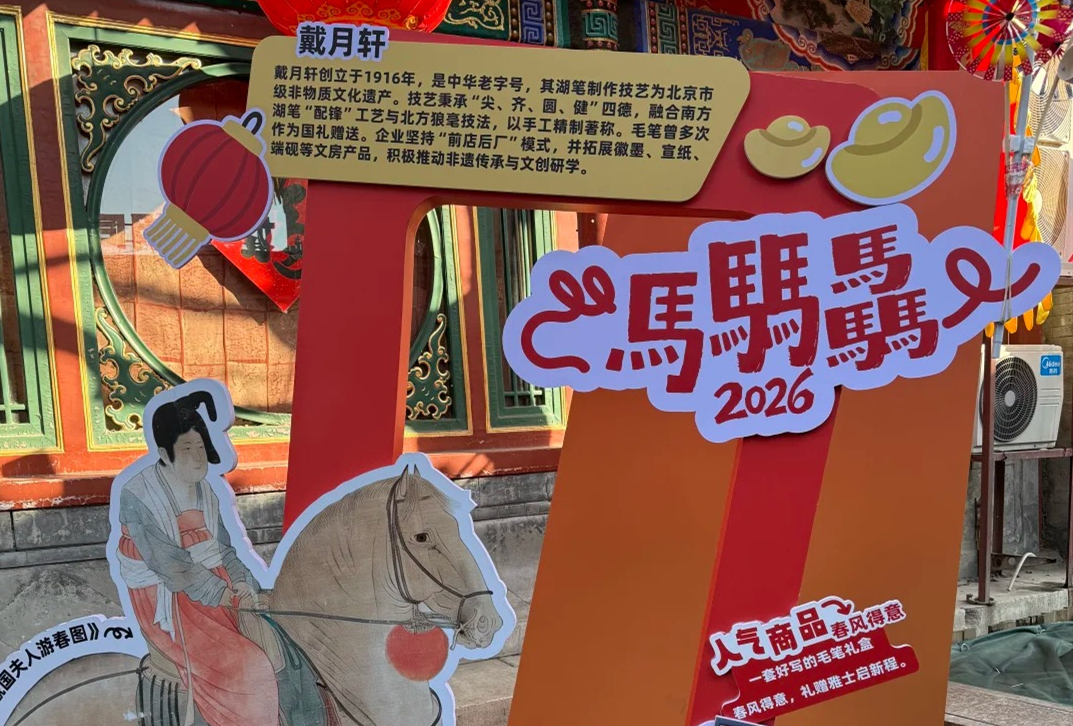 此外,庙会还专门设置了“伯乐来了——寻找厂甸马騳骉”活动,让大家沿街“寻马”。主办方精心策划,将66匹源自历代文物名画的艺术骏马“藏”于琉璃厂街巷各处。市民游客只需在街头公告板免费领取《丙午骏马艺术图鉴》,便可手持图册,沿着青砖古道开启寻“马”之旅,在打卡解锁中读懂中华尚马文化的深厚底蕴。