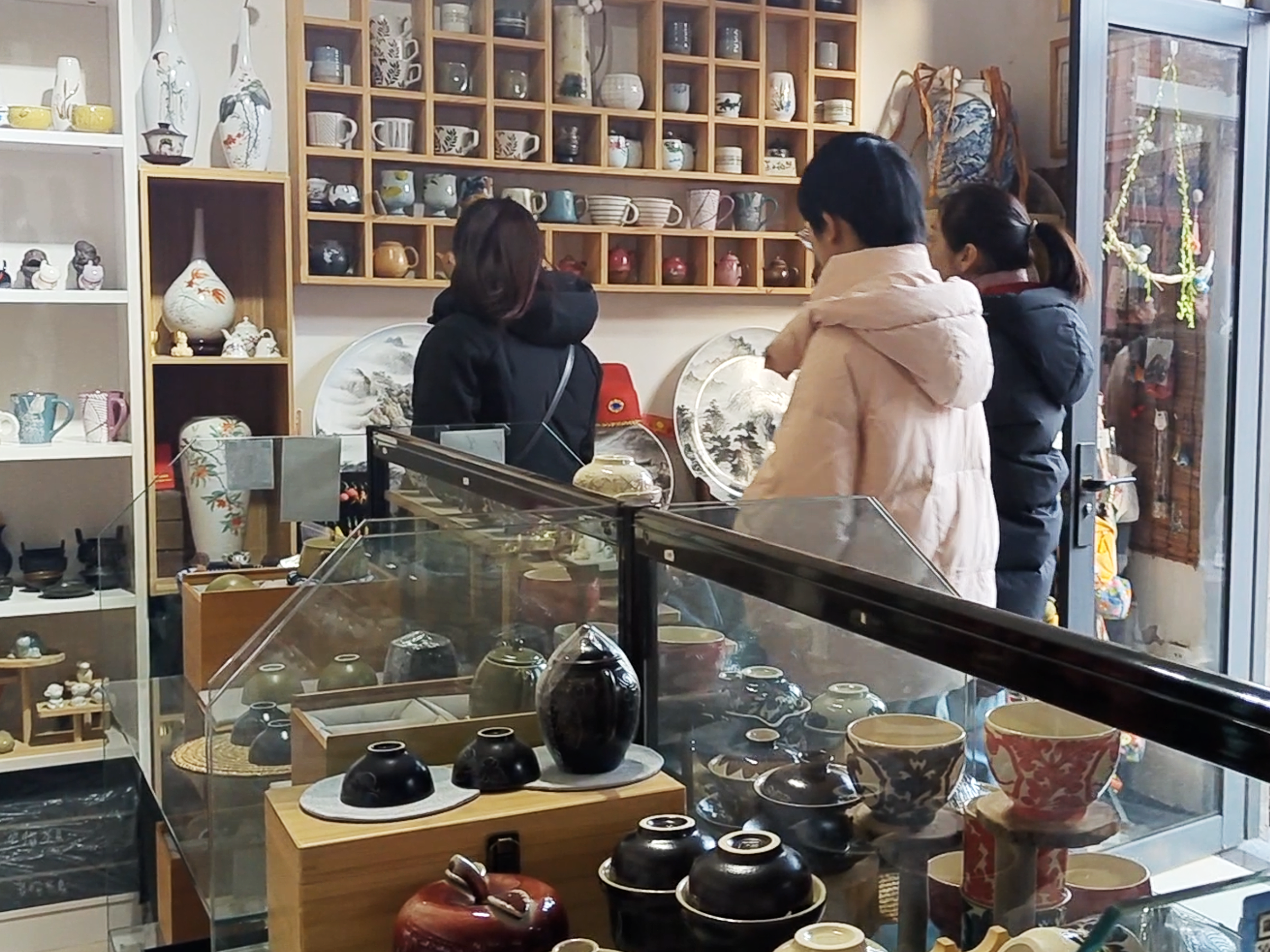 文创店内游客正在选购磁州窑特色瓷器 新华网 姚远 摄