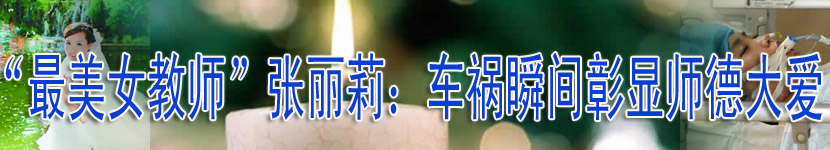 車禍瞬間挽救學(xué)生導(dǎo)致高位截癱的黑龍江?。玻箽q女教師張麗莉,被網(wǎng)友稱贊為“最美女教師”。連日來,張麗莉的感人事跡激發(fā)起社會(huì)各界的愛心傳遞,舍己為人、挺身向前的奉獻(xiàn)精神正成為中國年輕一代道德價(jià)值體系中的火炬和航標(biāo)。 張麗莉,女,1983年生,大學(xué)本科,黑龍江省佳木斯市第十九中學(xué)的語文教師。2006年,她從大慶師范學(xué)院文學(xué)院03級(jí)本科班畢業(yè)后,分配到佳木斯市第十九中學(xué)任教。她在2012年5月8日的交通事故中,為救學(xué)生而受重傷,致使雙腿截肢。2012年5月15日、5月16日,張麗莉獲“全國五一勞動(dòng)獎(jiǎng)?wù)隆?、全國三八紅旗手等榮譽(yù)稱號(hào)。