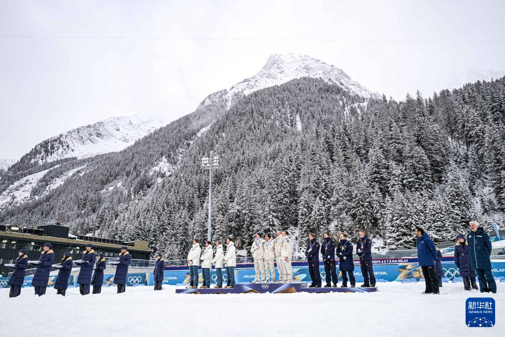 当地时间2月17日,在意大利安泰塞尔瓦举行的米兰-科尔蒂纳冬奥会冬季两项男子4x7.5公里接力比赛中,法国队获得冠军,挪威队获得亚军,瑞典队获得季军。
