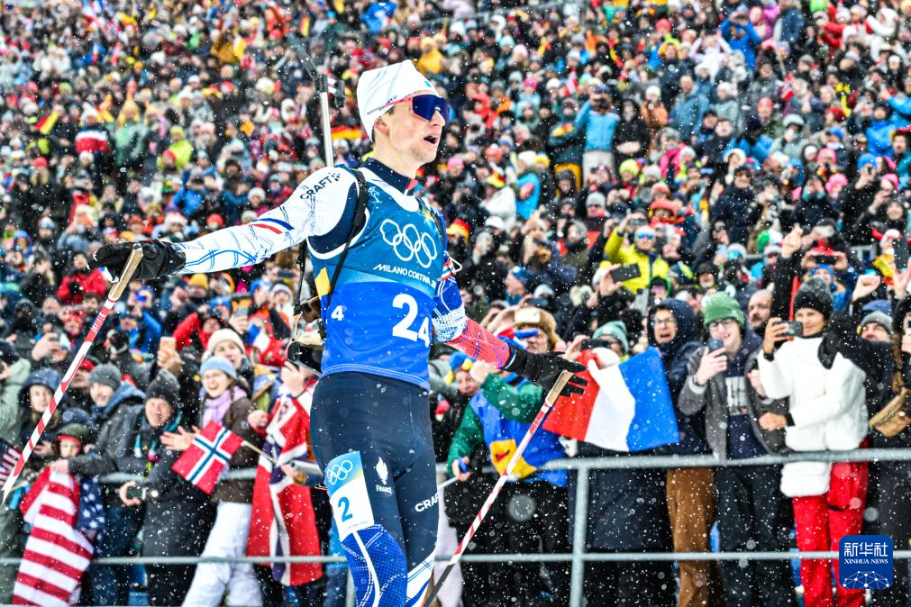 2月17日,法国队选手康坦·菲永·马耶在比赛中。
