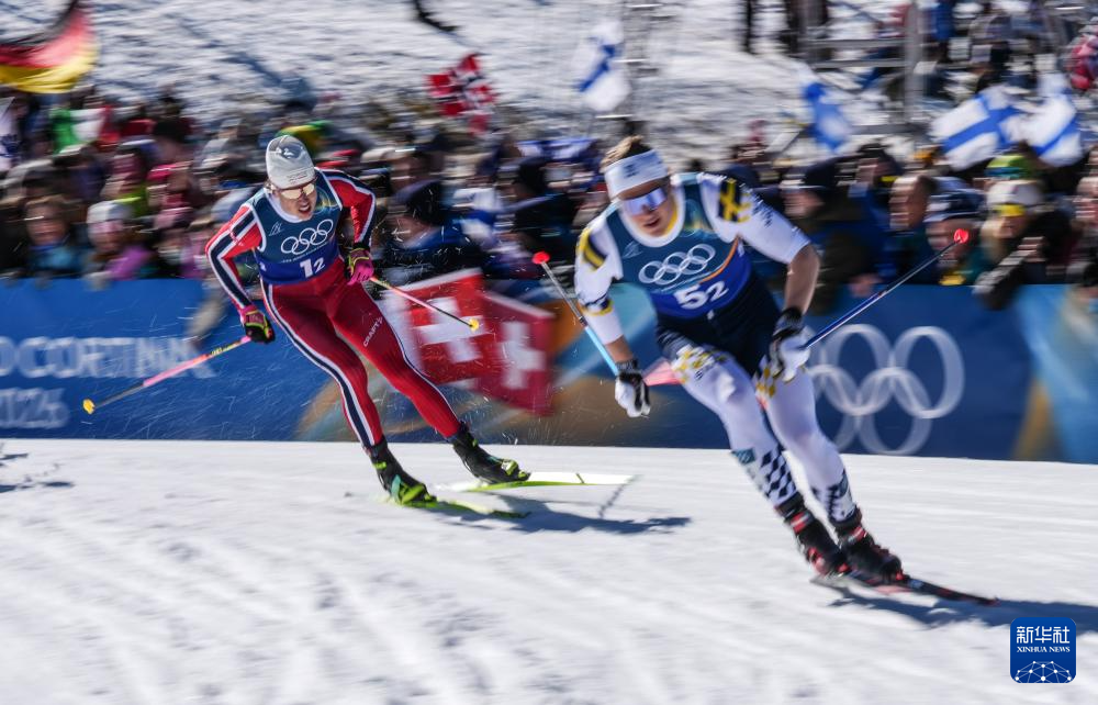 2月18日,挪威队选手克莱博(右一)在比赛中。