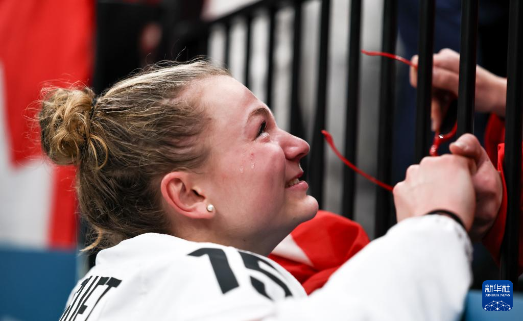 2月19日,瑞士队球员阿林娜·米勒在赛后庆祝胜利。