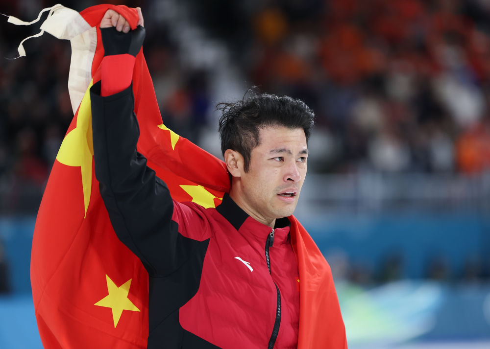当地时间2月19日,中国选手宁忠岩夺得米兰-科尔蒂纳冬奥会速度滑冰男子1500米冠军。
