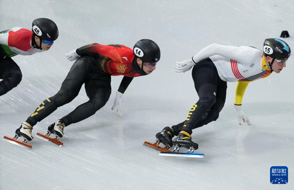 2月20日,中国队选手刘少昂(中)在比赛中。