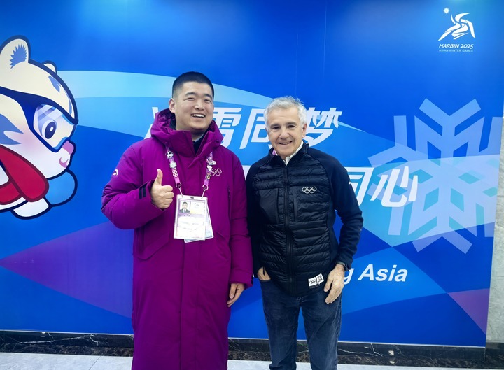 ↑刘宸赫在利维尼奥奥运村的工作岗位上
