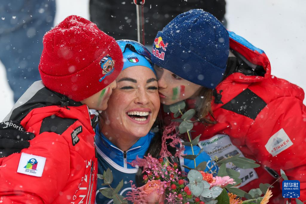 2月21日,德国选手普罗伊斯在终点处与队友及家人庆祝退役。