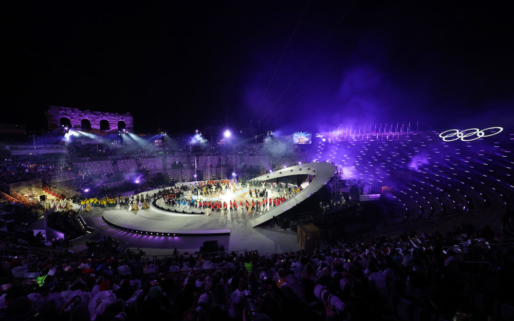 当地时间2月22日,米兰-科尔蒂纳冬奥会闭幕式在意大利维罗纳奥林匹克竞技场举行。