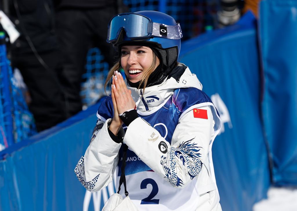2月22日,中国选手谷爱凌庆祝夺冠。新华社记者 王鹏 摄