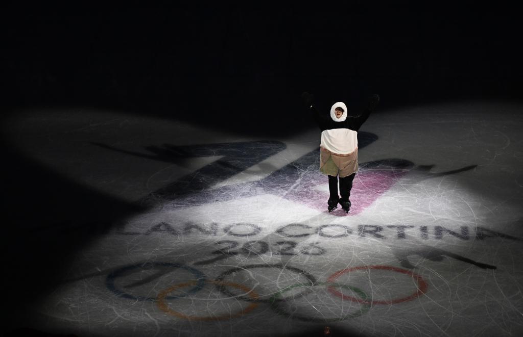 表演滑上的“大熊猫”不是别人,正是米兰冬奥会花样滑冰男单冠军、哈萨克斯坦运动员萨多洛夫,他扮演的是电影《功夫熊猫》中的大熊猫阿宝。萨多洛夫对大熊猫的喜爱程度可见一斑。