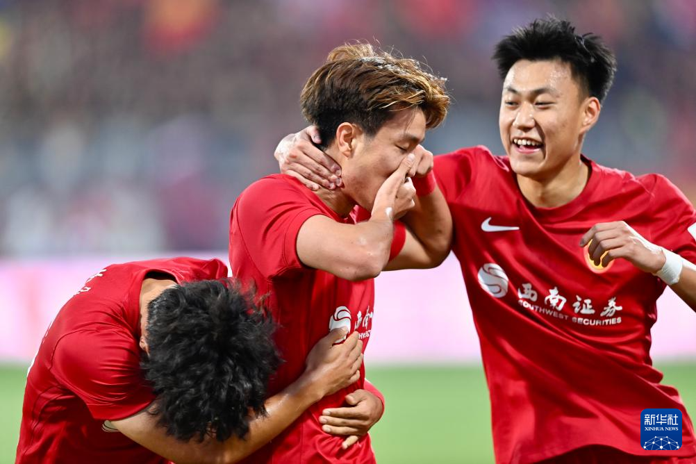 4月11日,在重庆举行的2026赛季中国足球超级联赛第五轮比赛中,重庆铜梁龙队主场2比1战胜武汉三镇队。