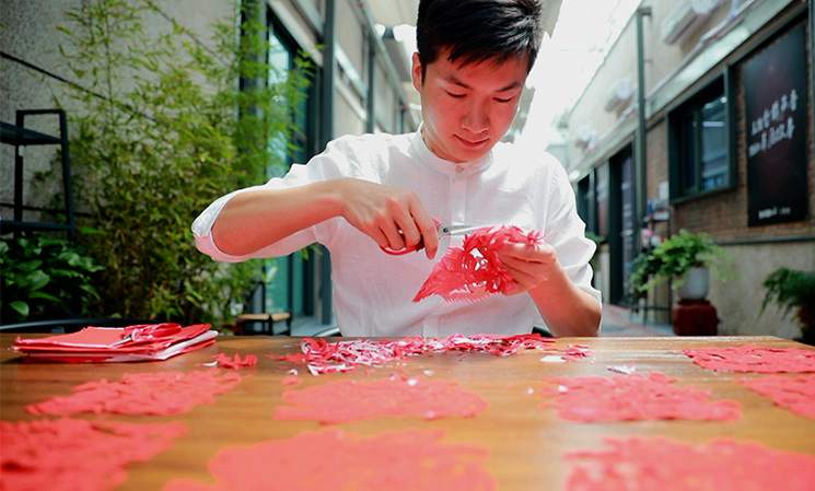 作為一個90后的剪紙傳承人,就要剪一些有新時代特點的剪紙作品。我擅長的是即興創(chuàng)作、脫稿剪紙,速度就是快。我們會了那些傳統(tǒng)的圖案之外,還要能夠看到任何的物體,或者別人給我一個命題就能即時創(chuàng)作。搞剪紙創(chuàng)作一定要豐富自己的知識面,這樣腦海中才會有更多的畫面跟場景。我感覺剪紙是讓我用紙和剪刀在對話,把我的情感通過紙釋放出來。其實是一種靜修,或者自我的享受。我以后要開展的工作,或許是要承擔著怎樣讓剪紙在00后、10后、20后這些年輕一代的未來人,怎么能認識我們這種傳統(tǒng)藝術(shù),這是我一生要去做的事情。