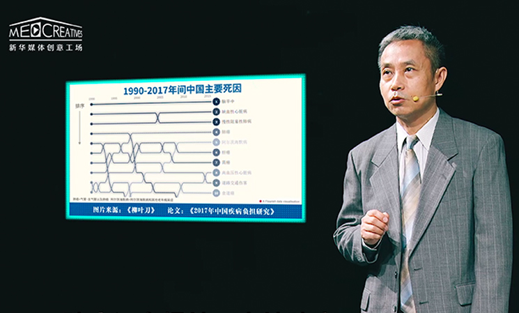2019年,著名的國際醫(yī)學(xué)雜志《柳葉刀》發(fā)表了一篇文章,介紹了我們國家從1990年到2017年,近30年來我們國家居民死亡的主要的原因,前四位分別是腦卒中、缺血性的心臟病、肺癌還有慢性阻塞性肺病。腦卒中在民間也叫作中風(fēng),就是我們平常說的腦梗塞和腦出血;缺血性心臟病就是冠心?。宦宰枞苑尾〉闹饕憩F(xiàn)就是肺氣腫。排在前四位的危險誘病因素分別是高血壓、吸煙、高鈉飲食和空氣污染。
