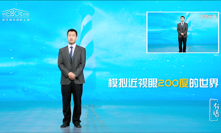 說到這,很多人就會說,近視眼戴副眼鏡就行了,對生活的影響真的這么大嗎?真的會有那么可怕的后果嗎?在這里,我給大家模擬一下,不同視力程度的人看到的世界。我們正常的眼睛看到的世界是清晰明亮的,正如您現(xiàn)在看到鏡頭里的我是清晰的,我臉上的表情你能夠看到。到了200度近視的患者眼里,世界就已經(jīng)開始變得模糊了。這個時候我在說話,我的眼睛在看著你,你還是能看得到的。在這個階段如果我們能夠采取一個合理的矯正方式,是有機會維持并且把我們的視力恢復(fù)到一個正常的范圍。