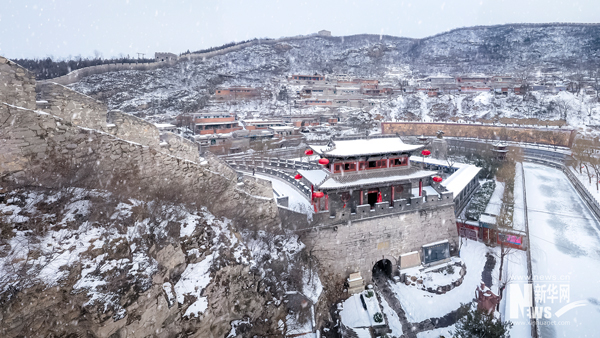 俯瞰暴雪過后的娘子關(guān)全景。古城堡依山傍水,居高臨下,關(guān)門兩座,護(hù)佑四方。楊東/攝