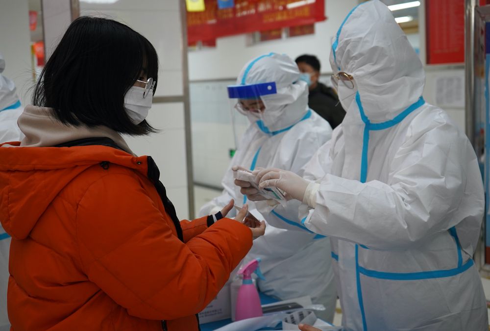 ↑1月7日,在石家莊市新華區(qū)錦繡乾城社區(qū),醫(yī)務(wù)人員在核酸采樣現(xiàn)場(chǎng)工作。