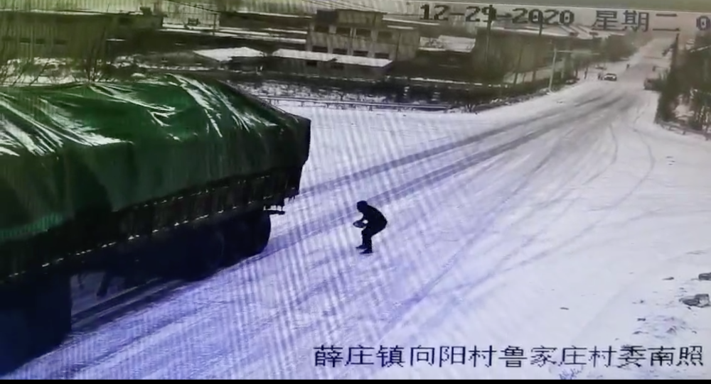 2020年12月29日,山東臨沂出現(xiàn)大雪降溫天氣,江蘇徐州一貨車在經過費縣時,因積雪上坡道路結冰,司機緊急制動于事無補,車輛不斷下溜。