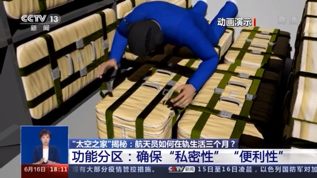 據(jù)了解,生活區(qū)內(nèi)有獨立的睡眠區(qū)、衛(wèi)生區(qū)、鍛煉區(qū),還配有太空廚房、就餐區(qū)和睡眠區(qū)。