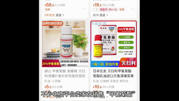 記者調(diào)查發(fā)現(xiàn),目前在淘寶、拼多多、京東等電商平臺(tái)上,存在大量宣稱可以“徹底毒殺”魚(yú)塘中雜魚(yú)、蝦蟹、鱔貝等水生物的“清塘”產(chǎn)品。其中甚至出現(xiàn)了“甲氰菊酯”“溴氰菊酯”等農(nóng)藥的身影。