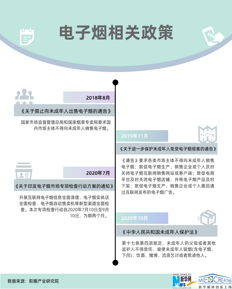 ????? 此前,我國(guó)關(guān)于電子煙的政策監(jiān)管問題一直是懸在電子煙行業(yè)之上的“達(dá)摩克利斯之劍”。2018-2020年,我國(guó)針對(duì)電子煙逐步出臺(tái)了相關(guān)政策,尤其是對(duì)容易落入誘惑陷阱的未成年增強(qiáng)了保護(hù),并開始禁止網(wǎng)上銷售,電子煙的監(jiān)管措施正在逐步加強(qiáng)。