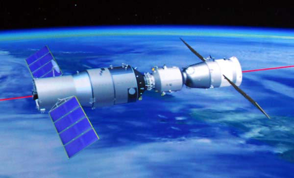 神舟九號(hào)與天宮一號(hào)進(jìn)行手控交會(huì)對(duì)接試驗(yàn)