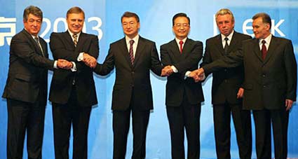 六國總理結(jié)合同年6月15日上海峰會達成的共識,研究了本組織成員國經(jīng)濟合作的優(yōu)先方向,提出了六國在經(jīng)貿(mào)、科技、社會、文化和其他領(lǐng)域合作的一系列具體措施。會后,成員國代表團團長簽署了《上海合作組織成員國政府首腦(總理)理事會會議聯(lián)合公報》。