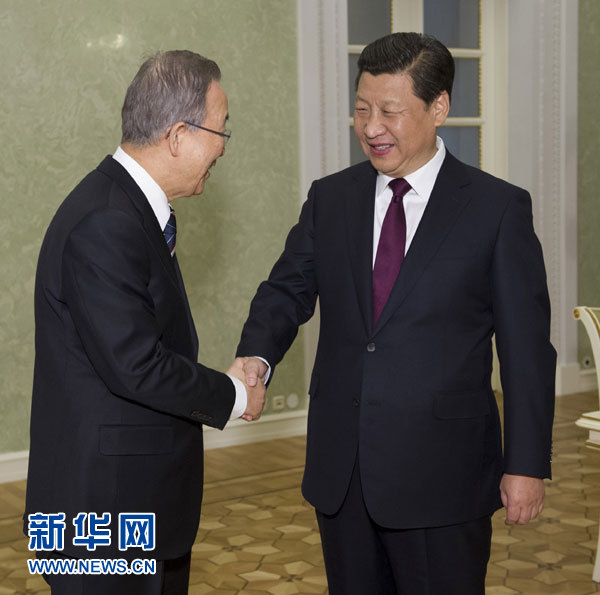 ??? 新華網(wǎng)俄羅斯索契2月7日電(記者陳贄)國(guó)家主席習(xí)近平7日在俄羅斯索契會(huì)見(jiàn)聯(lián)合國(guó)秘書(shū)長(zhǎng)潘基文。