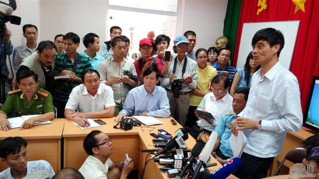 ????設(shè)在富國島的越南搜救前線指揮辦公室11日召開首次聯(lián)席會議。范貴肖主持會議并向新聞界通報越南搜救情況。