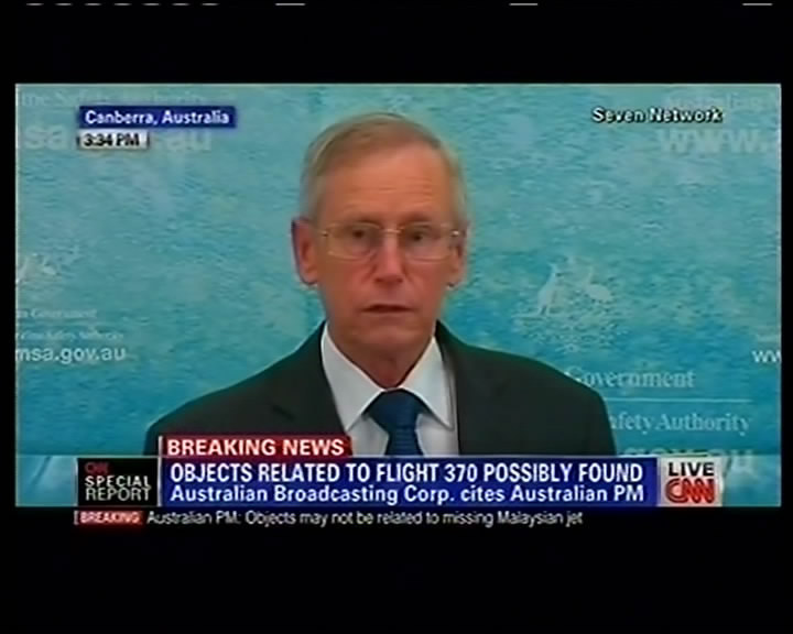 ??? 澳方稱在印度洋中發(fā)現(xiàn)了可能與馬航失聯(lián)客機有關物體這張3月20日拍攝的CNN視頻截圖顯示,澳大利亞海事安全局官員在堪培拉召開的新聞發(fā)布會上發(fā)言(左圖為相關搜尋海域的示意圖)。澳大利亞總理阿博特當日在議會說,澳方在印度洋中發(fā)現(xiàn)了可能與馬航失聯(lián)客機有關的兩個物體。澳大利亞海事安全局官員當日說,發(fā)現(xiàn)可疑碎片的位置與之前確定的馬航失聯(lián)客機南部搜尋航道高度吻合,但當?shù)睾S蛩沫h(huán)境非常差。新華社發(fā)