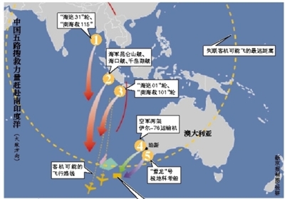 中國(guó)外交部發(fā)言人洪磊21日在介紹馬航失聯(lián)客機(jī)搜尋情況時(shí)表示,中澳保持密切溝通和協(xié)調(diào),中方派遣有關(guān)的軍機(jī)和船艦前往相關(guān)海域得到了澳方的支持和配合。他說(shuō),交通運(yùn)輸部進(jìn)一步優(yōu)化后續(xù)搜救方案。中國(guó)海上搜救中心指示南下編隊(duì)“海巡01”輪、“南海救101”輪繼續(xù)按原定搜尋方案向圣誕島以南部分的我方南部搜尋區(qū)域搜索前進(jìn),并逐漸向發(fā)現(xiàn)疑似失聯(lián)客機(jī)殘骸海域靠近;北上編隊(duì)“海巡31”輪、“南海救115”輪逐漸向我方南部搜尋區(qū)前進(jìn),從北向南開(kāi)展搜尋工作。目前,海軍昆侖山艦、??谂灐⑶u湖艦等已趕赴南印度洋疑似發(fā)現(xiàn)失聯(lián)客機(jī)殘骸的海域。