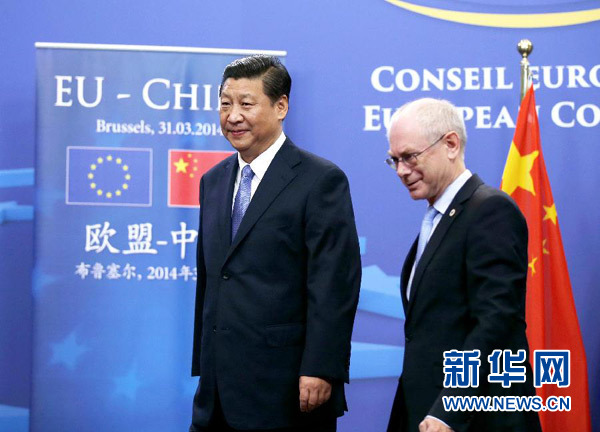 ????3月31日,國家主席習(xí)近平在比利時布魯塞爾同歐洲理事會主席范龍佩舉行會談。 新華社記者 鞠鵬 攝