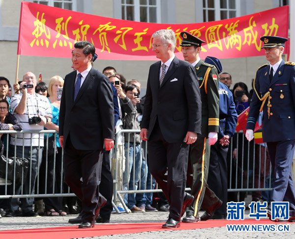 ??? 4月1日,國(guó)家主席習(xí)近平離開比利時(shí)布魯日市啟程回國(guó)。離開前,比利時(shí)國(guó)王菲利普在布魯日廣場(chǎng)為習(xí)近平舉行隆重歡送儀式。新華社記者龐興雷攝