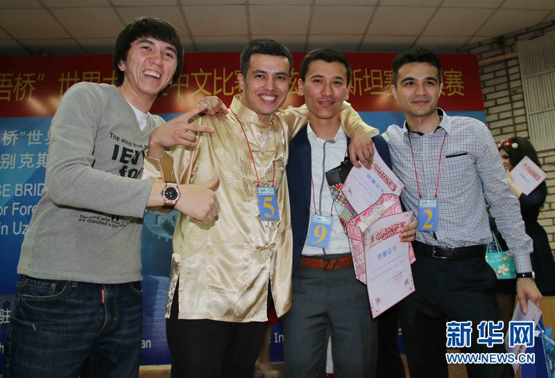 4月25日,烏茲別克斯坦塔什干國立東方學(xué)院大禮堂比賽現(xiàn)場(chǎng),獲獎(jiǎng)選手在合影留念。