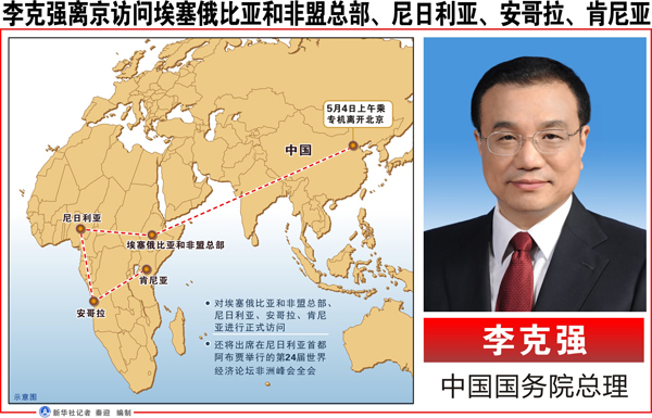 李克強離京訪問埃塞俄比亞和非盟總部、尼日利亞、安哥拉、肯尼亞 新華社記者 秦迎 編制
