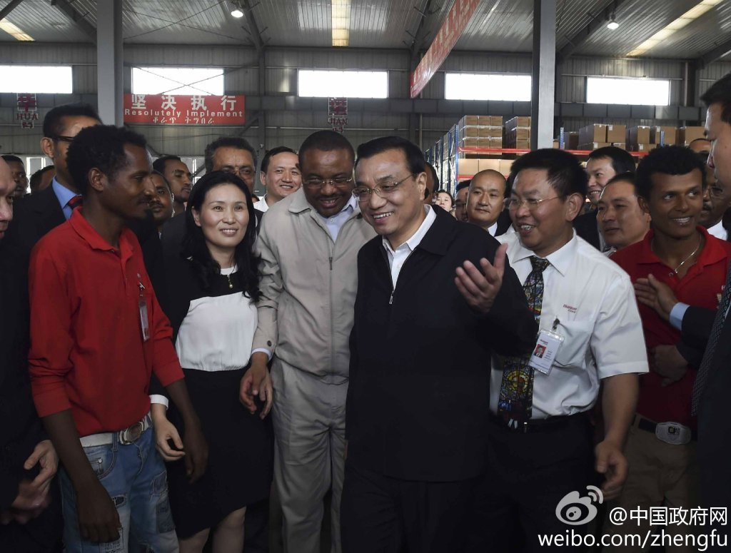 新華網(wǎng)北京5月6日電 據(jù)中國政府網(wǎng)微博報(bào)道,5日下午,李克強(qiáng)在埃塞總理陪同下參觀東方工業(yè)園。該園由中方投資興建,目前已為當(dāng)?shù)靥峁?000余個(gè)就業(yè)崗位。李克強(qiáng)說,中國愿意把可轉(zhuǎn)移的勞動(dòng)密集型產(chǎn)業(yè)優(yōu)先轉(zhuǎn)移到非洲,帶動(dòng)當(dāng)?shù)鼐蜆I(yè),促進(jìn)發(fā)展,增強(qiáng)非洲自我發(fā)展能力,造福雙方人民。