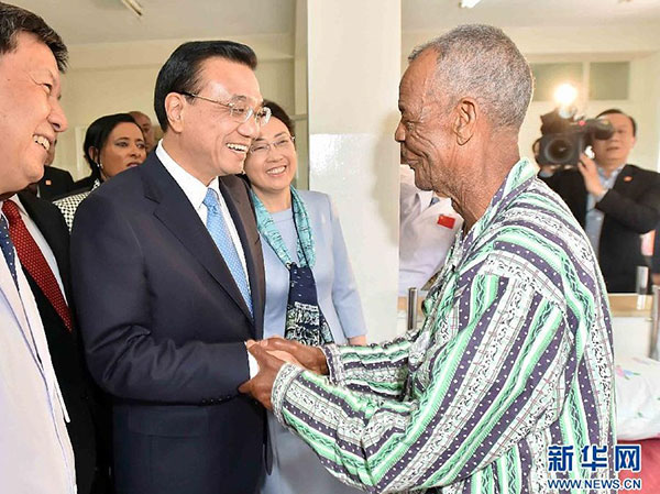 ??? 5月6日,中國(guó)國(guó)務(wù)院總理李克強(qiáng)與埃塞俄比亞總統(tǒng)穆拉圖一同來(lái)到亞的斯亞貝巴阿勒塔醫(yī)院,看望受益于中國(guó)免費(fèi)白內(nèi)障手術(shù)“光明行”活動(dòng)的埃塞俄比亞患者。新華社記者李濤攝