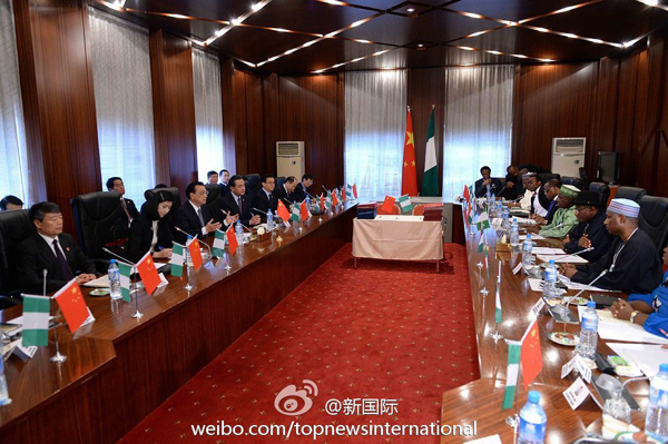 ????新華網(wǎng)北京5月8日電 據(jù)新華社“新國際”微博報(bào)道,李克強(qiáng)總理7日與尼日利亞總統(tǒng)喬納森會談。喬納森感謝李克強(qiáng)在尼安全形勢嚴(yán)峻的情況下如期到訪,是患難見真情。李克強(qiáng)表示中方將對尼提供各種支持和幫助,同時(shí)希望尼方切實(shí)加強(qiáng)對在尼中國公民的保護(hù)。目前中國在尼有6.5萬人,是我在非人員最多的國家之一。