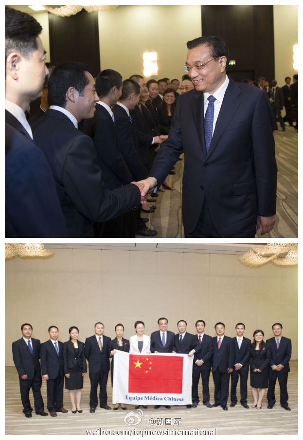 ??? 新華網(wǎng)北京5月9日電 據(jù)新華社“新國際”微博報(bào)道,8日,李克強(qiáng)總理在羅安達(dá)看望援安醫(yī)療隊(duì)。“有什么困難嗎?”李克強(qiáng)與隊(duì)員一一握手,詢問工作情況。得知隊(duì)員最大的困難是語言,李克強(qiáng)鼓勵大家說,辦法總比困難多,雖然語言溝通有障礙,但可以用心靈感受對方疾苦,讓對方切身感受到中國人民的美好情誼。?
