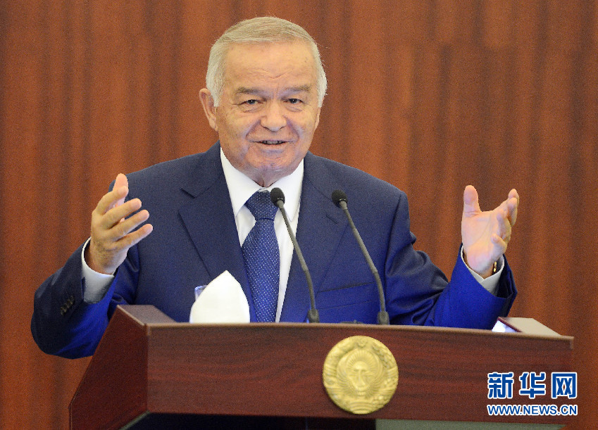 ????6月6日,在烏茲別克斯坦首都塔什干國際會議宮,烏茲別克斯坦總統(tǒng)卡里莫夫在講話。(沙達(dá)提 攝)
