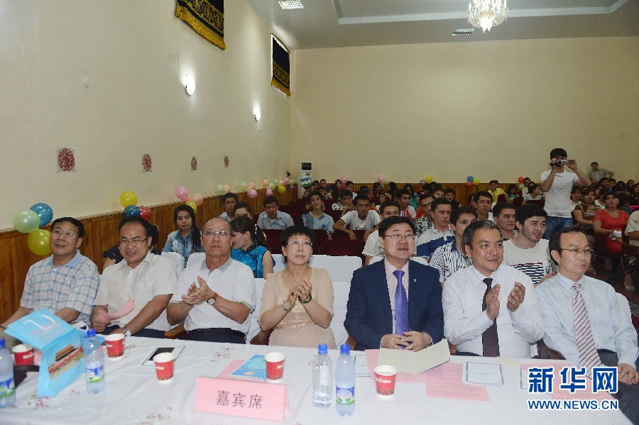 6月9日,烏茲別克斯坦首都塔什干的烏世界語言大學(xué)禮堂活動(dòng)現(xiàn)場(chǎng)。?
