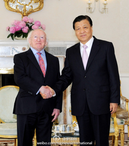 ??? 新華網北京6月18日電 據新華社“新國際”微博報道,中共中央政治局常委、中央書記處書記劉云山17日結束愛爾蘭之行。他在會見愛總統(tǒng)希金斯時說,中國與愛爾蘭雖相距遙遠,但在雙邊和國際事務中存在廣泛的共同利益,兩國關系成為不同幅員、制度、發(fā)展階段國家平等相待、友好合作的典范。