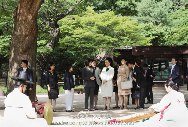 ???? 新華網(wǎng)北京7月3日電? 據(jù)新華社“新國際”微博報道,習(xí)近平主席夫人彭麗媛3日下午在韓國官員陪同下參觀被列為世界文化遺產(chǎn)的昌德宮,了解宮殿建筑歷史、音樂傳承等情況,并欣賞韓國傳統(tǒng)樂器伽倻琴散調(diào)表演,對藝術(shù)家的精彩演出表示高度贊賞。彭麗媛說,中韓友誼源遠(yuǎn)流長,歡迎韓國朋友多到中國參觀訪問。